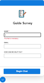 • When defining a template that references a chat entry point with a precontact survey form, you have the option of including a precontact survey icon and label at the top of the Guide widget.
