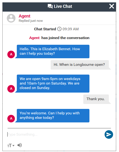 Customer chat interface detects default browser language settings, allowing the contact and agent to communicate using a myriad of different languages and alphabets. If a contact's browser language is set to a local dialect, their chat language defaults to the dialect's parent language, with more than 20 languages supported.