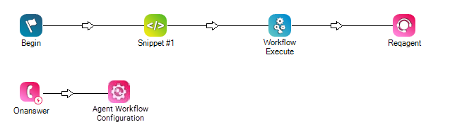 The following example shows the Workflow Execute action being used to integrate a CRM application with Agent, Agent Embedded, or Agent Integrated. You can find more information about using the action, including a sample script to download, on the help page about the integration process.