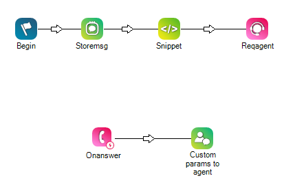 The following script shows the Storemsg action turning off the storage of the chat transcript before the chat is delivered to an agent. None of the transcript is stored once the chat ends.
