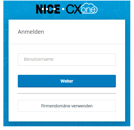 Wenn die Mandanten ID in der für Ihr CXone Mpower System verwendeten URL enthalten ist, wird auf der Authentifizierungsseite die Schaltfläche Unternehmensdomäne verwenden nicht angezeigt.