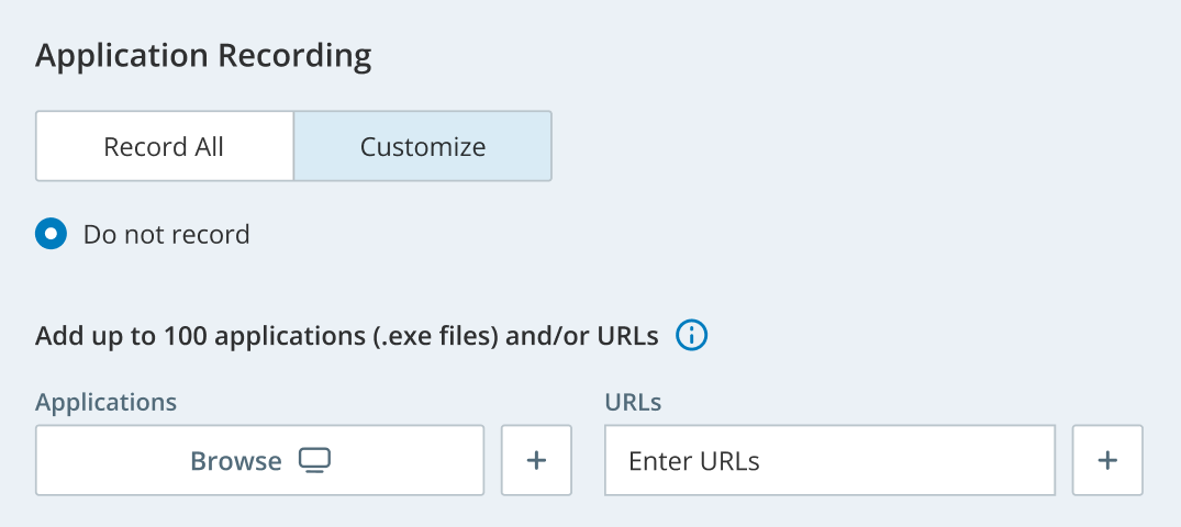 Mit der Negativliste können Sie verhindern, dass sensible Daten versehentlich aufgezeichnet werden. Die Sperrliste kann bis zu 100 Anwendungen und/oder URLs enthalten.