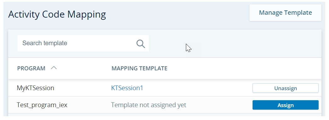 - Vaya a Administrador de programas > Asignación de códigos de actividad y haga clic en Administrar plantilla.