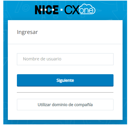Si el ID de Tenant se recibe en la URL utilizada para su CXone Mpower sistema, la página de autenticación no mostrará el botón Usar el dominio de la empresa.