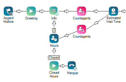 Dans ce script, Hours vérifie que l'entreprise est ouverte. Si c'est le cas, Countagents compte le nombre d'agents disponibles pour une compétence