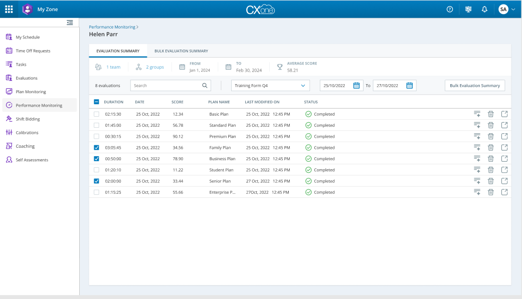 詳細: Michael は評価プロセスを合理化するために 評価サマリー ツールに目を向けました。 マイケルは、各エージェントの長くて詳細な評価フォームをナビゲートする代わりに、評価サマリーから各エージェントの評価の簡潔な概要にアクセスできます。 評価サマリーは、エージェントのパフォーマンスの明確なスナップショットを提供し、エージェントの主な強みと改善すべき領域を強調します。