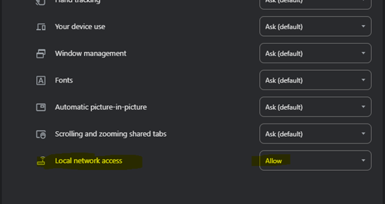 ポップアップが表示されない場合は、ローカル ネットワーク アクセスを手動で許可します。