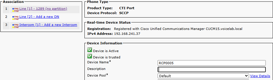 Verifieer dat alle apparaten die gemonitord moeten worden via UCCX, geconfigureerd zijn in het veld CUCM Controlled Devices (Beheerde apparaten) in het gebied Device Information (Apparaatinformatie).