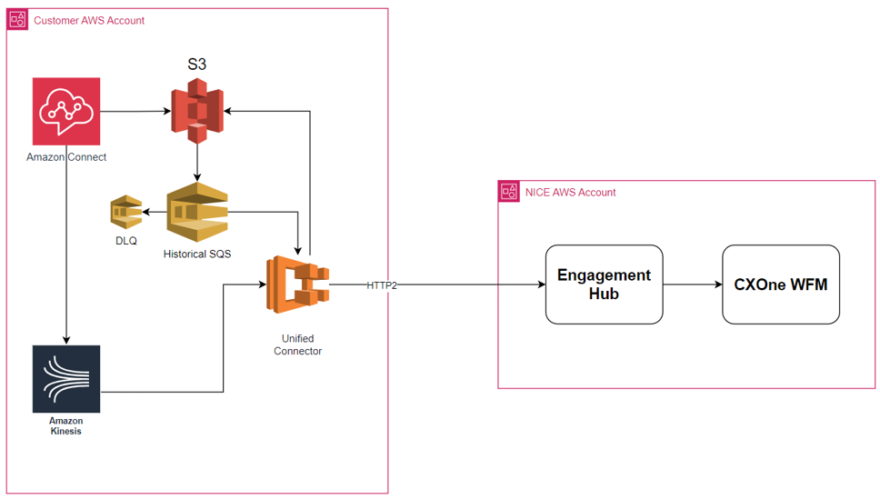 Amazon Connect ACD geïntegreerd met de door NiCE ontwikkelde connector en CXone WFM.