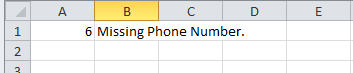 Abra o arquivo para visualizar os problemas com o upload. Neste exemplo, o registro na linha 6 não tem um número de telefone: