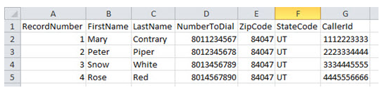 Para uma lista de chamadas Proactive Voice, você deve ter uma coluna de identificador exclusivo e uma coluna de número de telefone.