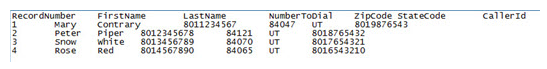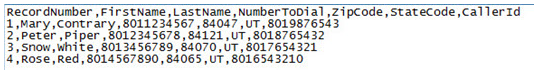 2. Abra o arquivo para visualizar os problemas com o upload. Neste exemplo, o registro na linha 6 não tem um número de telefone: