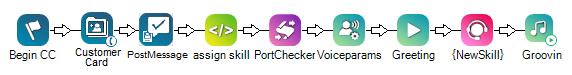 在此示例中,CC Post MessageCustomer Card Create 之后的第三个操作,标题为 PostMessage。 事件示例为: