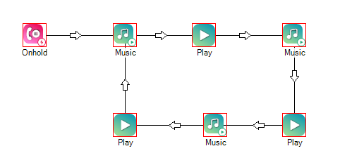在简单事件中,当呼叫被置于暂候状态时,将发生一个循环,其中会播放音乐,随后是一条消息,接着又是音乐和另一条消息,依此类推,直到该呼叫被解除暂候状态。
