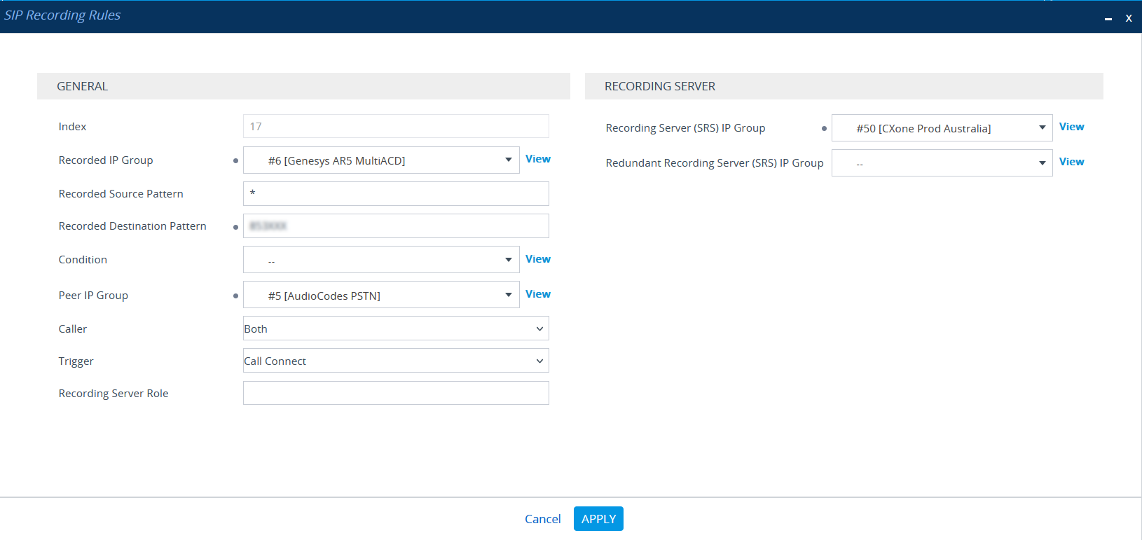 請按照以下步驟設定具有 SIPREC 的 Genesys LDS 介面: