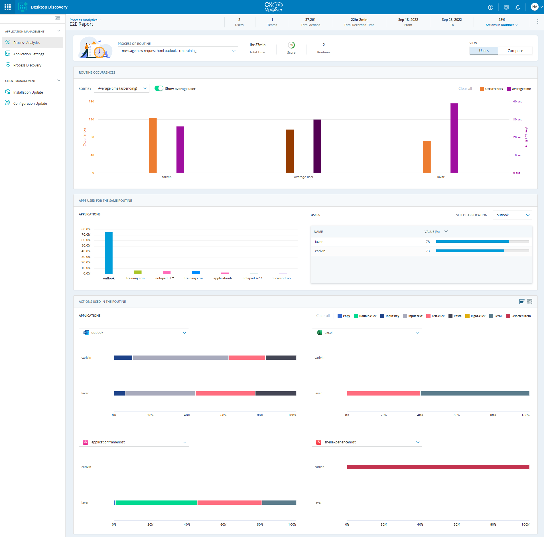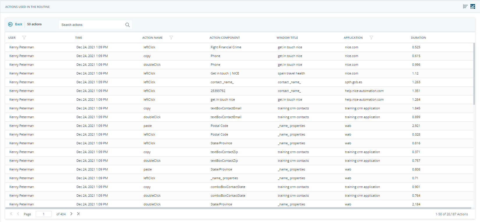 常式彙總了所執行動作的序列。來檢視相應流程或常式的更多詳細資訊。 此頁面可幫助您確定使用者的工作是否高效,從而分析使用者的績效。