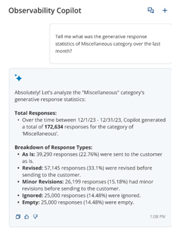 Observability Dashboard允許您仔細檢查Copilot、Autopilot Knowledge和Autopilot所採用的 AI 功能。 儀錶板提供了對生成回應性能的全面洞察,使您能夠確定需要改進的領域並優化運營。